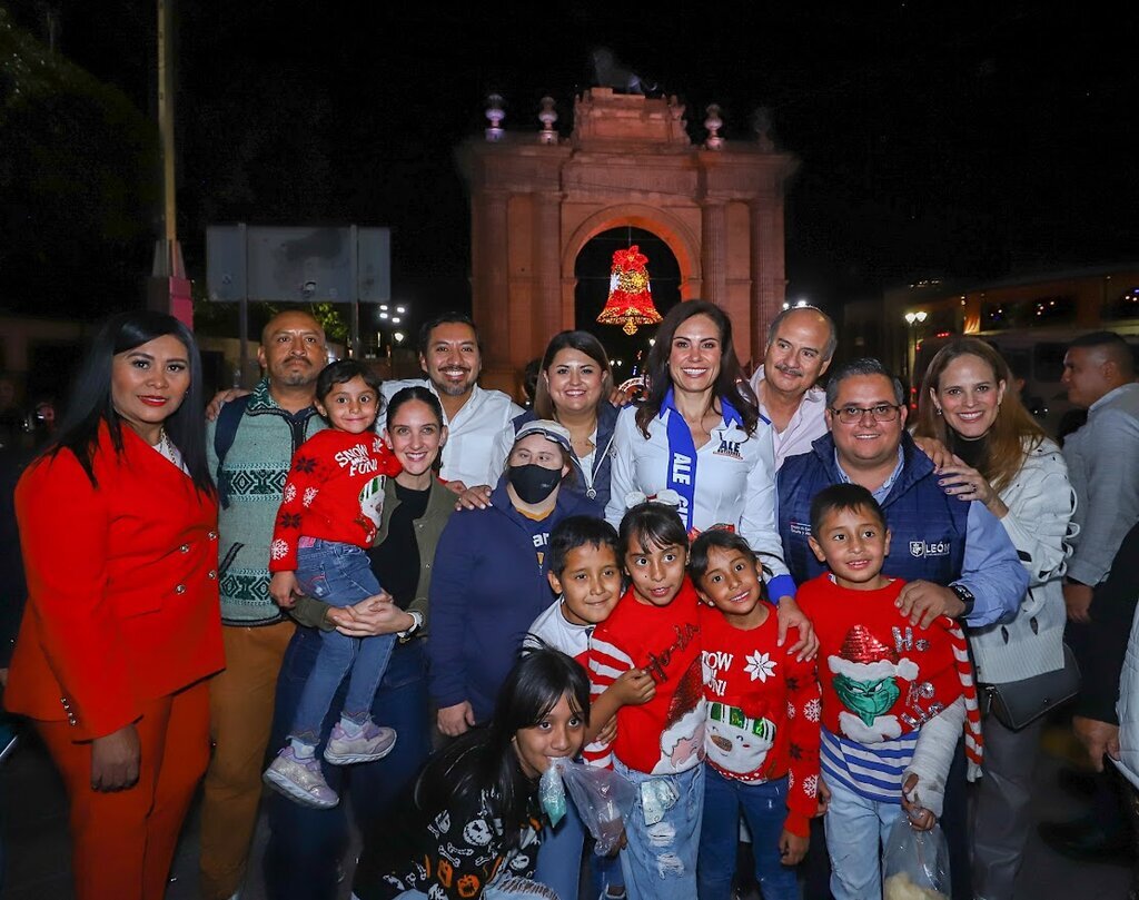 Posteriormente, acompañada de autoridades municipales, Ale Gutiérrez encabezó un recorrido con un ambiente festivo, con villancicos y obsequiando dulces y algodones hasta llegar a la Plaza Expiatorio donde se hizo el encendido del tradicional Nacimiento, el más grande de México.